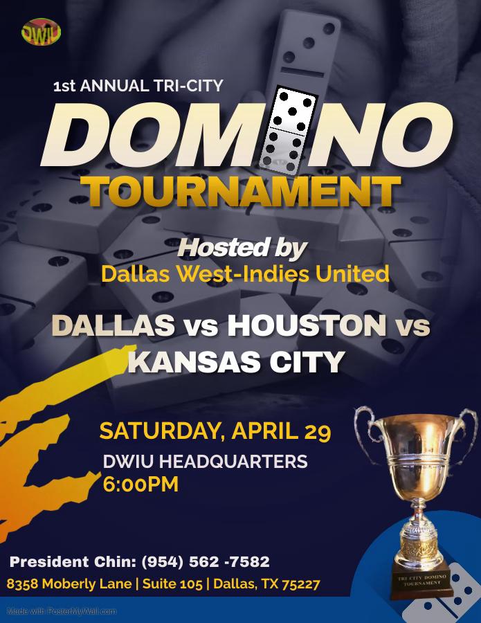 Dallas West Indies United will host the 1st Annual tri-city domino tournament - Dallas vs Houston vs Kansas City.